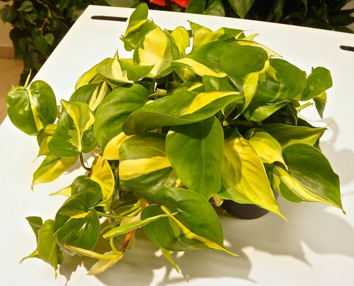| 11 | Сканденс | Сердцевидные листики имеют плотную структуру и блестящее покрытие. Размер листьев может достигать до 20 см. Часто используется для оформления арок и кашпо. |