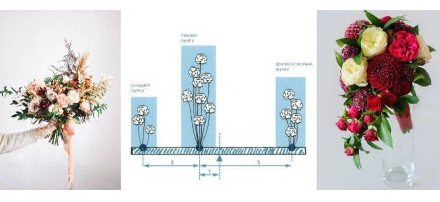 - Лучевая (2, 3) – встречается в венках, круглых композициях или с ниспадающими растениями.