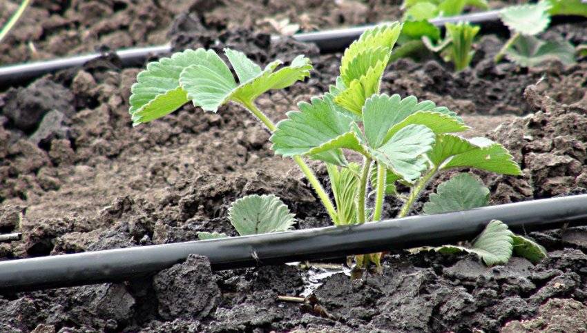 Организация увлажнения грядок с клубникой при помощи системы капельного полива — оптимальный вариант и для начинающих садоводов, и для опытных. Такой способ увлажнения плантаций садовой земляники может быть внутренним и концевым, регулируемым и нет. Особенность её в том, что вода попадает непосредственно к корням растения, поэтому капельные системы используют и во время цветения, и в период плодоношения.