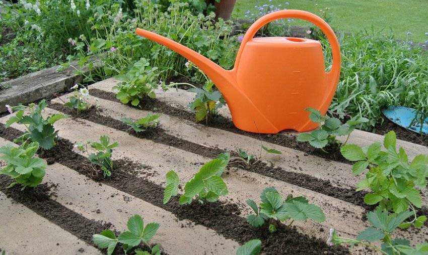 Недостаток такого метода — большие затраты сил и времени. Шланг поможет незначительно их сократить, но при этом расход воды значительно увеличится из-за того, что увлажняться будет не только прикорневая область куста, но и междурядья. Кроме того, нужно следить за температурой воды. Она должна быть такой же, как и температура воздуха. Укладывать шланг напрямую от колодца или колонки до грядки с садовой земляникой крайне нежелательно, т. к. это может привести к гибели растений.