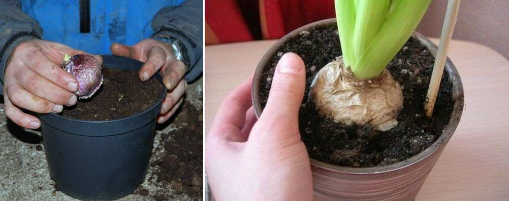 В увлажненный и разровненный грунт луковицы легко вдавливают и присыпают сверху небольшим слоем субстрата с таким расчетом, чтобы верхушки луковиц оставались открытыми на 1-3 см. Конкретное время посадки зависит от выбранного для выгонки вида цветка и предполагаемого срока его зацветания.
