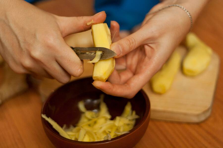 - Тщательно вымойте имбирный корень в чистой, прохладной воде.