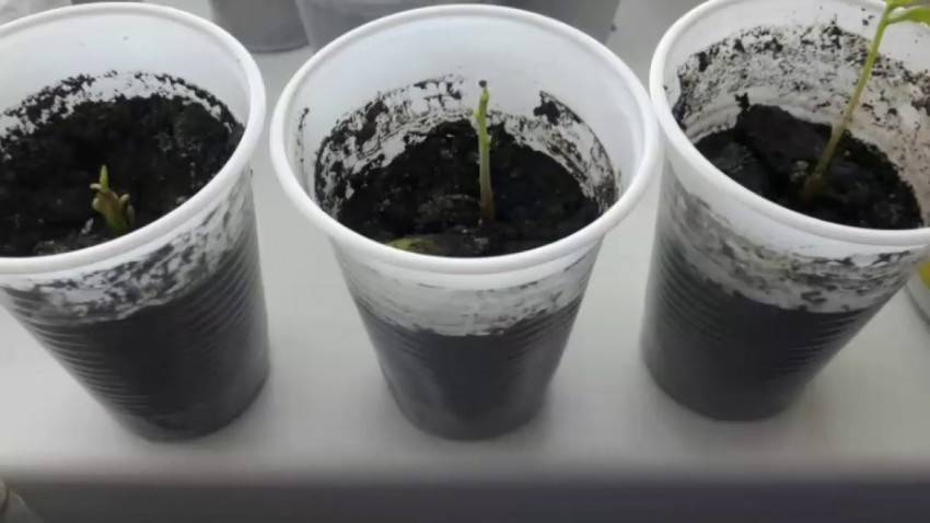 В горшке должны быть дренажные отверстия для удаления лишней влаги. Посадка проросшего материала производится на глубину 3-5 см. Для первого раза до подрастания саженцев можно использовать небольшие пластиковые стаканчики, которые удобно разместить в квартире на подоконнике.