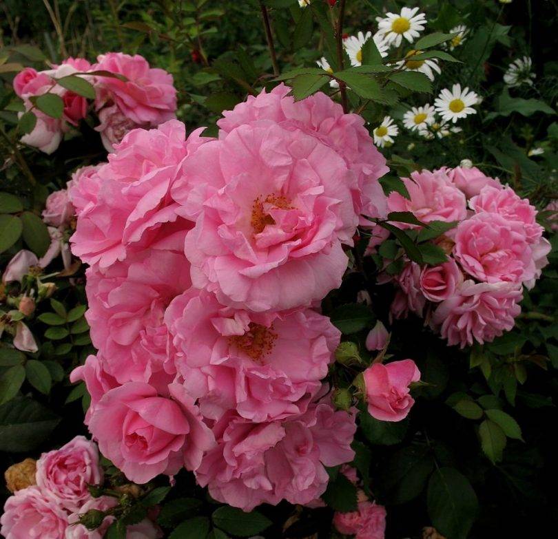 | «Джон Дэвис» | Цветки бледно-розового цвета, махровые, собранные в кисти по 10-12 экземпляров. Цветет до начала заморозков. Легко переносит морозы, является лучшим сортом для Подмосковья. |