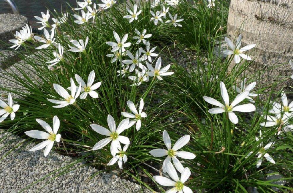 - Зефирантес атамасский. Это растение принадлежит к белоцветковой группе. Луковица зефирантеса атамасского представляет собой яйцевидную форму с укороченной шейкой, которая покрыта темной коркой. В диаметре луковица составляет примерно 2-2,5 см. Из луковицы вырастают длинные линейные листья, очень узкие по ширине. Обычно на одно растение приходится примерно 5-6 прикорневых листьев, не больше. Цветонос в высоту может достигать примерно 20-25 см, трубчатый, не имеет листьев. Цветок распускается с белоснежными лепестками, в диаметре составляет не более 4 см. Цветение этого вида зефирантеса приходится на апрель-июнь.